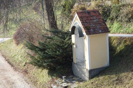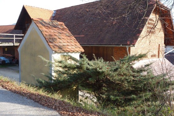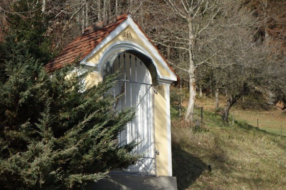 Am Dorfeingang des alten Kirchweges aus der Gams nach Adriach steht auf dem Anwesen der Familie Fassl vulgo Hacker ein schöner Hausbildstock.