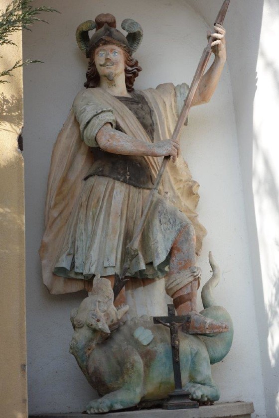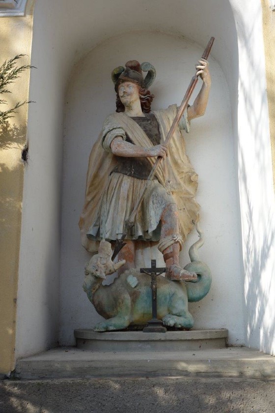 Am Georgi-Sonntag 1981 segnete Pater Hieronymus die wunderschöne, hochbarocke Holzstatue, welche anschließend in einer feierlichen Prozession von der Kirche zum sorgfältig erneuerten Hausbildstock getragen wurde. Vor der Einweihung des renovierten Bildstocks hielt Peter Nahold eine liebenswerte Ansprache über die Geschichte des gegenständlichen Georgi-Bildstocks. Der Einweihung ging eine kurze, aber gewaltige Rede von Pater Hieronymus voraus. Für die musikalische Umrahmung sorgte die Adriacher Sängerrunde und die sogenannte „Fink-Kapelle“ vom Musikverein Frohnleiten. Die Festansprache hielt OSTR. Msgr. Prof. Johannes Parizek.
