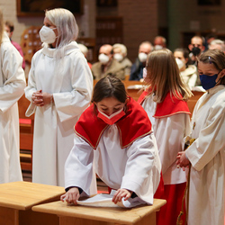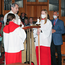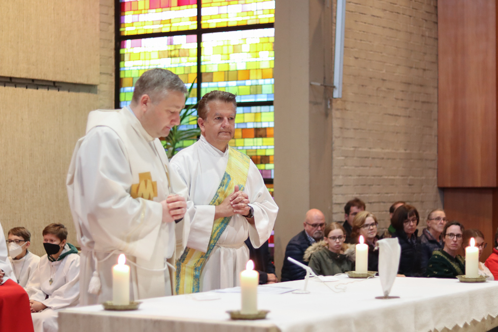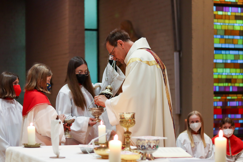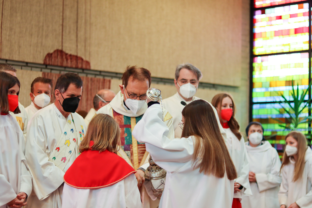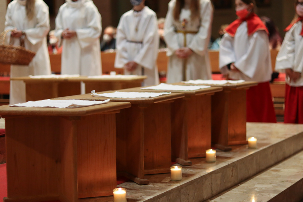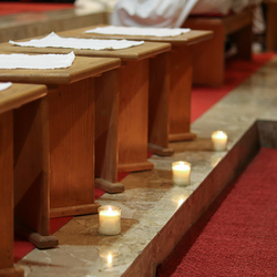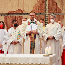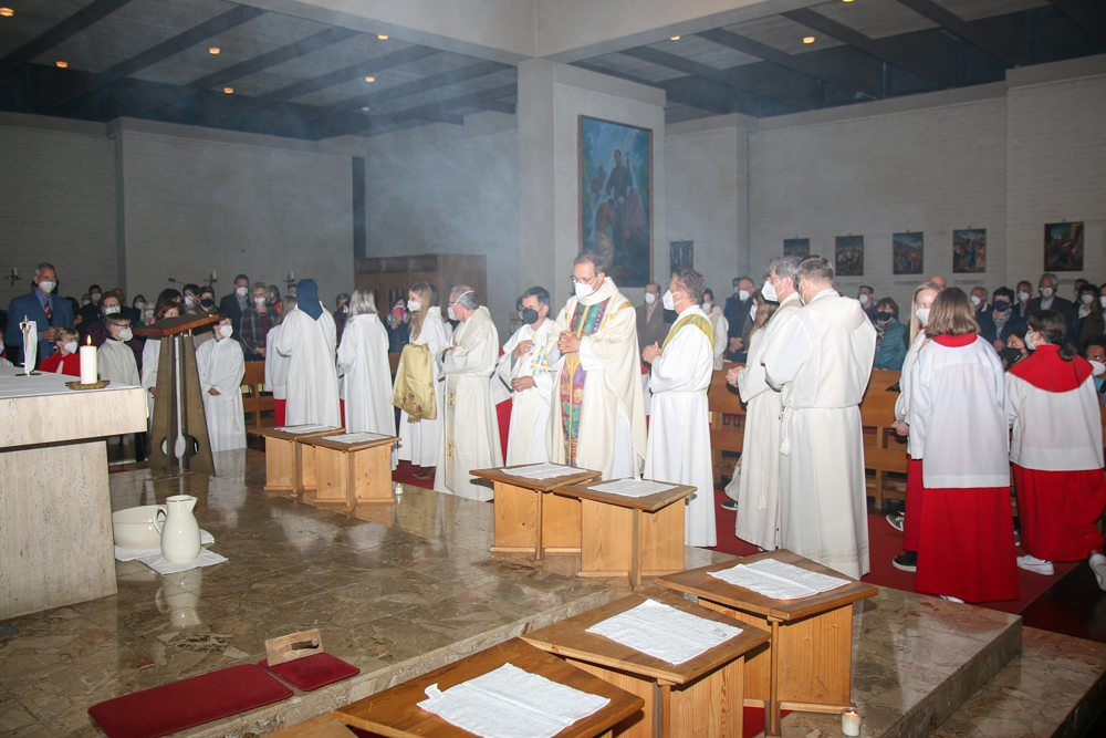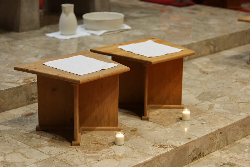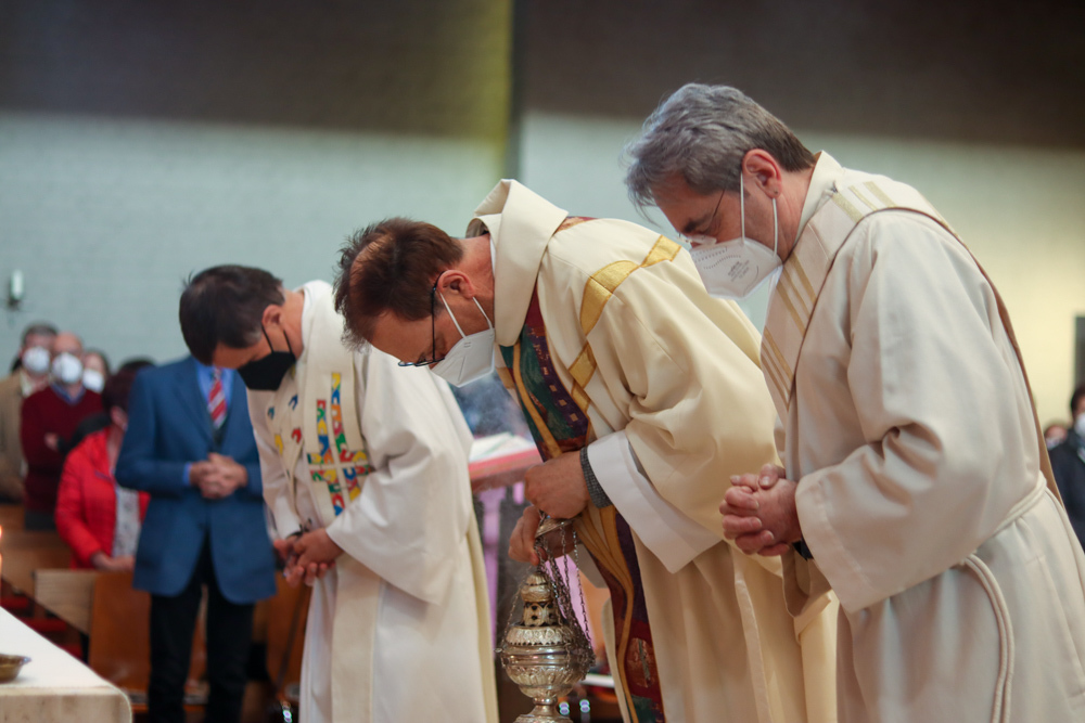 In einer etwas anders gestalteten Fußwaschung wurde jenen gedacht, die nicht oder nicht mehr am Leben der Kirche teilnehmen können oder möchten. Die Stühle blieben leer. Symbolisch für Rand- und Zielgruppen und jene Menschen, die unsere Gesellschaft mitprägen, wurden Kerzen entzündet. Als Zelebranten fungierten unsere drei Priester, drei Diakone sowie alle Pastoralreferentinnen und Referenten, welche den Sendungsauftrag im Seelsorgeraum Kaiserwald erfüllen.