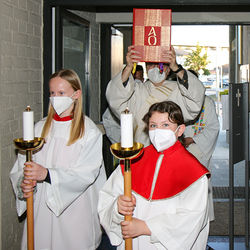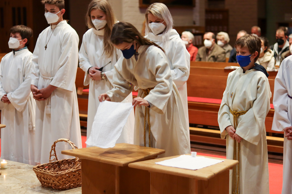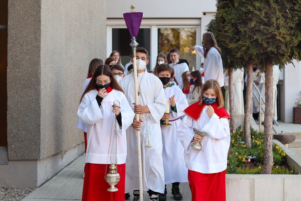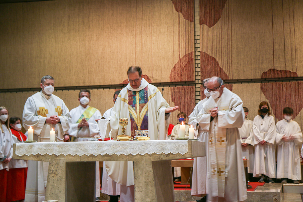 Am Gründonnerstag feierten wir eine gemeinsame Seelsorgeraum-Messe in der Pfarrkirche Lieboch. Mit dabei waren drei Priester, drei Diakone, drei Pastoralreferentinnen, über 20 Ministranten und verschiedene weitere Dienste aus unseren sechs Pfarren.