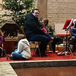 Tina Fegerl hat mit den Kindern in vielen Proben wieder ein tolles Krippenspiel einstudiert und eine besinnliche Andacht vorbereitet. Musikalisch begleitet wurde es von eine Bläsergruppe von klein bis groß.