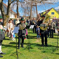 Trotz unbeständigem Wetter fanden sich am Freitag den 13. Mai dreizehn unerschrockene BesucherInnen zur Maiandacht beim Haindlkreuz in der Mühlau ein. Maria Pitsch feierte eine stimmungsvolle Andacht mit schöner Musikbegleitung zu Gottes wundervoller Schöpfung mit uns. Für eine Stärkung mit Kräutersaft, Aufstrichbroten mit Kräutern vom Platz und Schörgis Kräuterschnaps reichte gerade noch die Zeit bis zum nächsten Regenguß. Statt dem geplanten Kräuterspaziergang wurde zumindest ein Blüten Mandala gelegt.