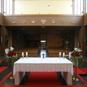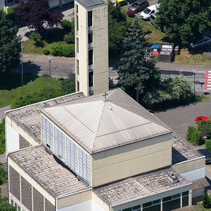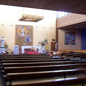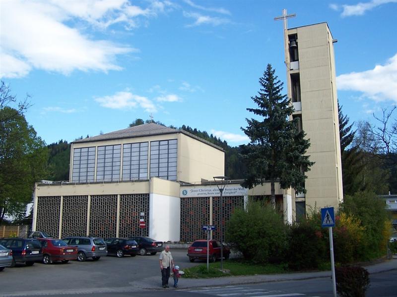 Unweit davon konnte ein Grundstück erworben und 1962 die von Architekt Ferdinand Schuster geplante Kirche mit freistehendem Glockenturm geweiht werden.